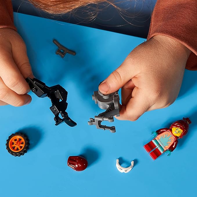 - Kids can stage action-packed performances with this awesome LEGO City Fire Stunt Bike (60311) toy playset, featuring a cool flywheel-powered stunt bike and LEGO City TV character Freya McCloud