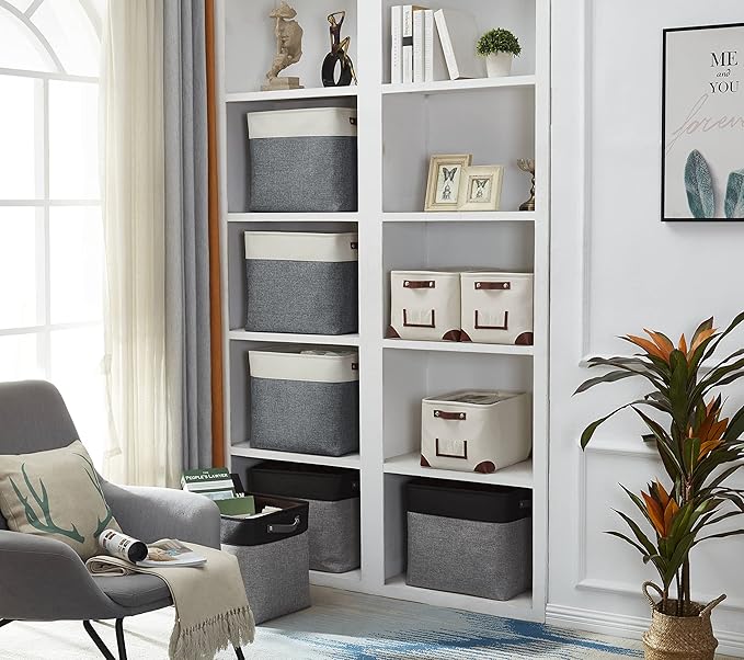 - ✅Saves Space & Easy Maintenance: DECOMOMO's storage bins for shelves are collapsible for space-saving when not in use. EVA fabric baskets are easy to clean, dust the basket or spot clean with light soapy water with a soft cloth.