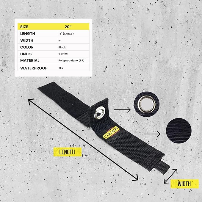 COLSEN Storage Strap – 20 inch large Heavy Duty Garage Organization Cable Keeper Wire Holder Outdoor rope strap Hose Hanger for extension cords RV Organizers Garden Anchor Marine Workshop (6Pack)