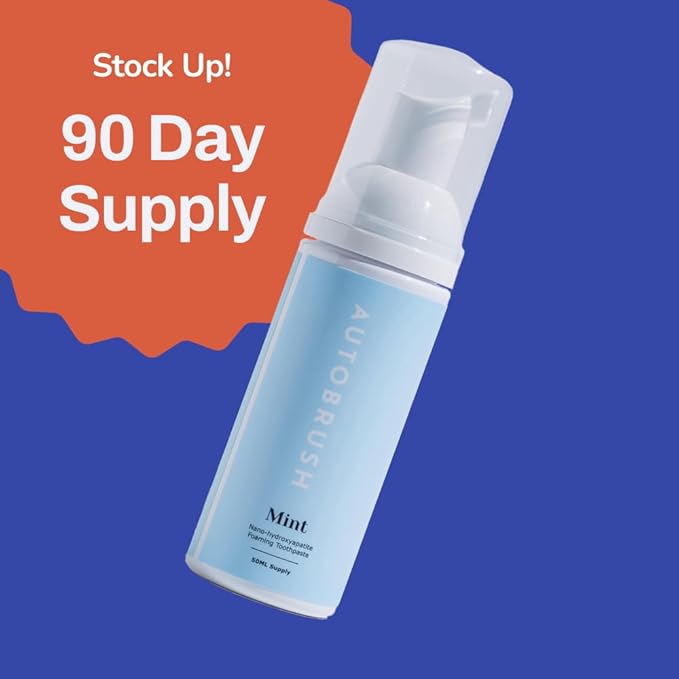autobrush Original Mint Flavor Fluoride-Free Foaming Toothpaste for Adults, Whitening & Deep Cleaning, Travel Friendly, Anti-Cavity, Foam Toothpaste (3 Pack)