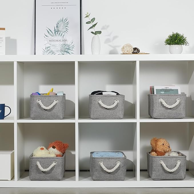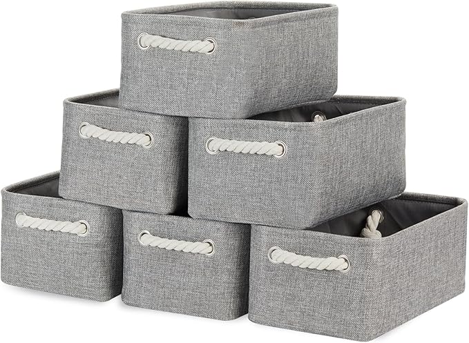 Bidtakay Small Gray Baskets Set of 6 Fabric Storage Bins with Handles 11.8 x 7.8 x 5 inch Collapsible Canvas Organizer Bins Baskets for Organizing Closet Shelf Storage