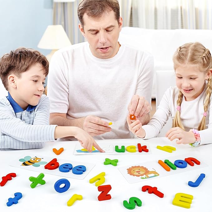 - Wonderful Learning Toys for Toddlers 2, 3, 4 Years Old: Toddlers just need to place the right wooden letters on top of the flash cards, easy and fun to learn new words and letters!