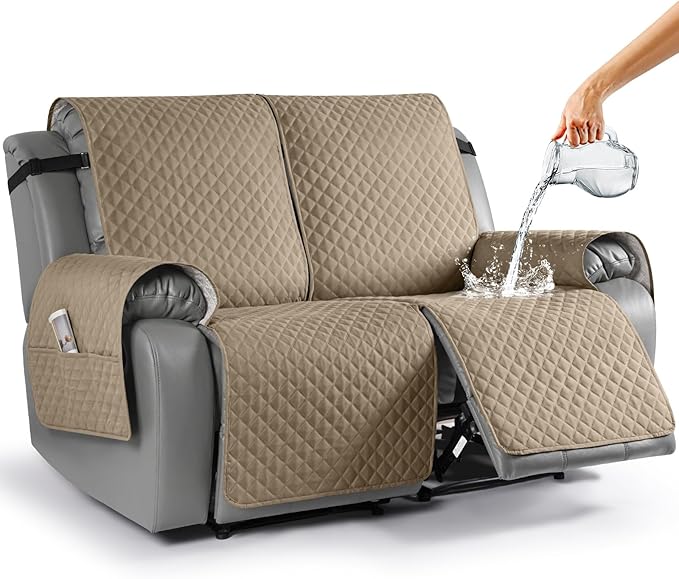 TAOCOCO Loveseat Recliner Cover Non-Slip Sofa Slipcover, Pet Cover for Loveseat Recliner with Elastic Straps, Washable Reclining Loveseat Cover Recliner Furniture Protector (2 Seater, Camel)