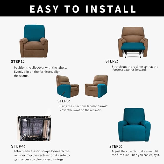 Easy-Going 100% Dual Waterproof Recliner Cover Stretch Soft Couch Cover for Dogs, Sofa Slipcover for Recliner Couch Leakproof Furniture Protector for Kids, Pets Peacock Blue