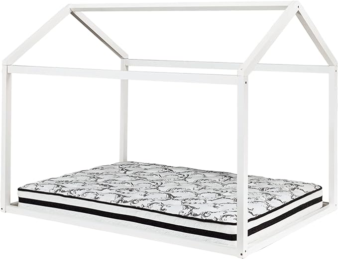 • STURDY CONSTRUCTION: Made of wood with a white finish, the realistic roofline adds a charming loft effect. Mattress available, sold separately. Bed does not require foundation/box spring