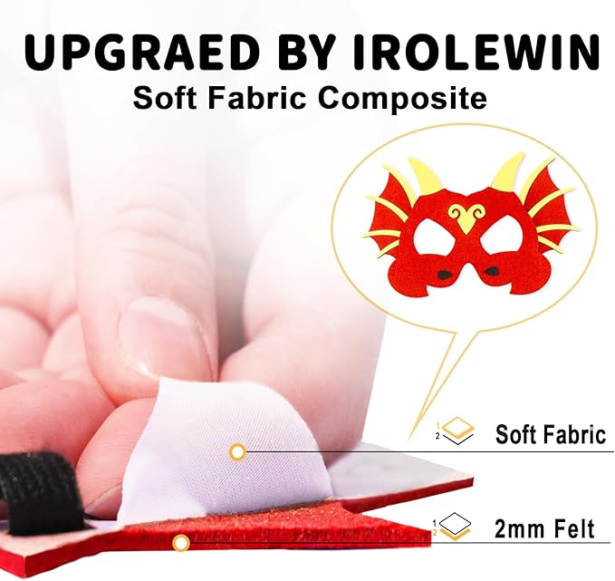 - Uninterrupted Dress-Up Fun: To achieve this, we have incorporated an adjustable hoop and loop, ensuring a secure fit and eliminating the hassle of neckties. Double-layered 75D Imitation Silk fabric guarantees exceptional durability during even the most daring adventures. Felt dragon mask, composited with a soft fabric, ensures both durability and comfort