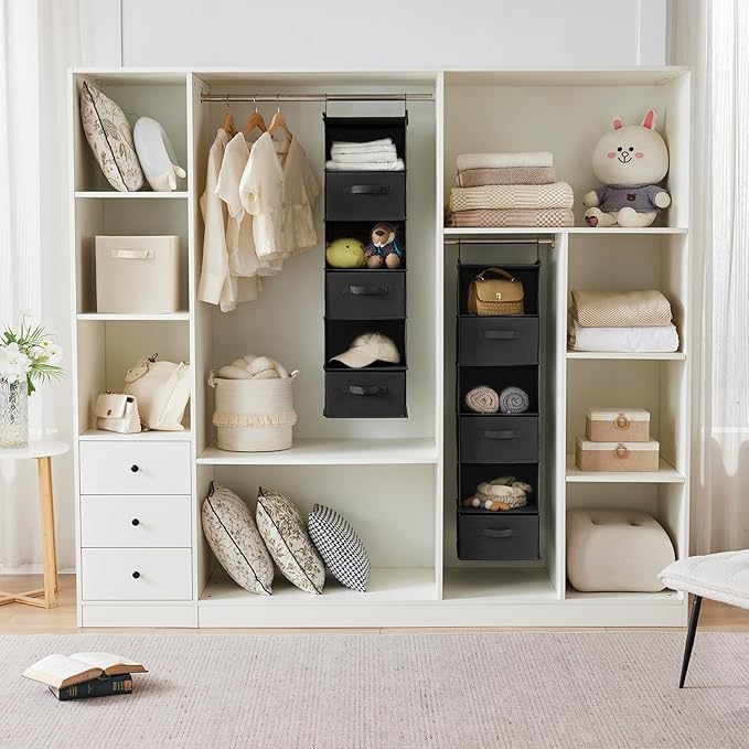 - STRONG CONSTRUCTION - The hanging organizer comes with a strong hook system, and hangs from any closet rod holds up to more weight.