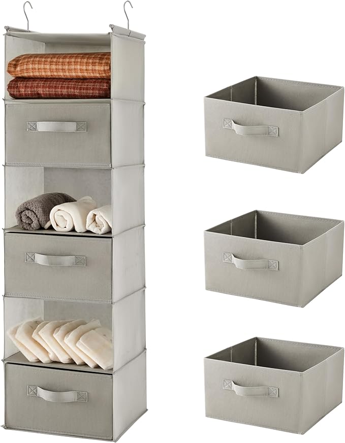 MAX Houser 6 Tier Shelf Hanging Closet Organizer, Closet Hanging Shelf with 2 Sturdy Hooks for Storage, Foldable (Light Grey-D3)