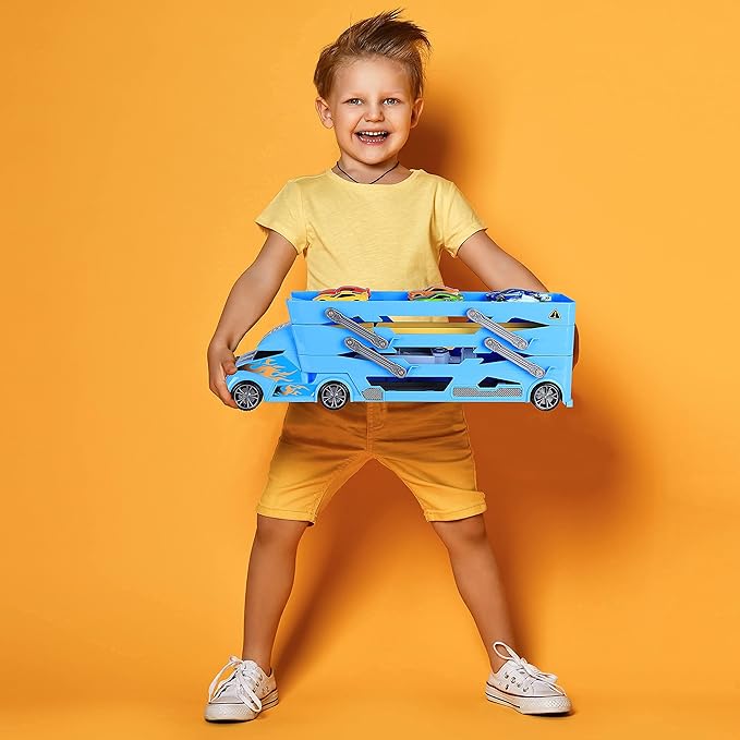 - 🚗 Realistic Car Carrier Truck Toy: Let the fun get rolling right away—the Toyli car carrier toy transport truck comes with 6 beautifully racing cars in all different styles and vibrant colors.