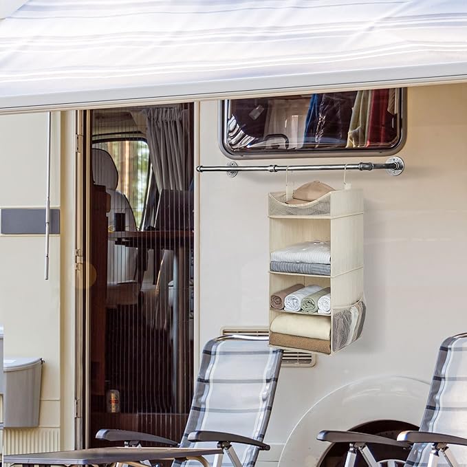 - Hanging closet shelf for versatile storage of sweaters, knitwear, handbags, scarves, shirts, pants, hats, shoes, dorm essentials and more in the closets, trailers, college dorm, or RVs.
