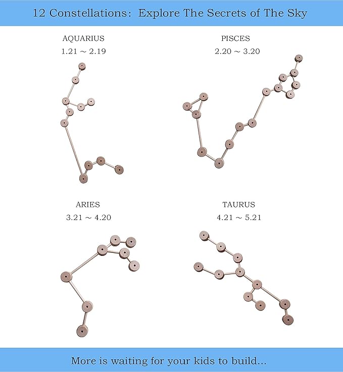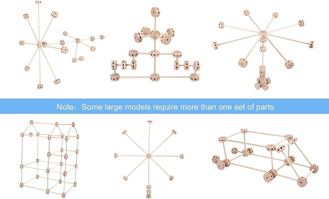 - 【WHAT YOU GET】40 pcs rods of different lengths and 20 pcs round joints, 1* barrel box, 1* Instructions. Assembly Tips: The rods was made of soft lumber,they are a bit tight in the early of use,rotating insertion will be easier. Kids can build all kinds of shapes follow his/her imagination like house, animal,car, tank,airplane,12 constellations puzzles,etc.