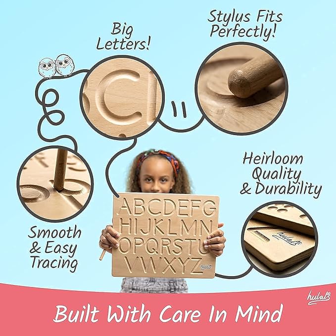 - While Other Wood Alphabet Tracing Boards have tiny letters, splinters and sharp edges our Boards come with large & smooth letters and rounded edges - ideal prewriting Montessori toys for 3 year olds!