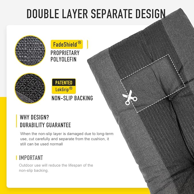 - 【 Double-layers Bottom Separate Design】In addition to the LokGrip non slip backing layer, also have peoprietary polyolefin protective layer inside, which effectively prevents damage to the foam filling due to friction. Even if the spider web shape bottom non slip layer is damaged due to long-term use, cut carefully and separate from it, the chair cushion also can still be used normal, double protective, make the chair cushion more durable.