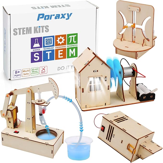 Poraxy 4 Set STEM Kits for Kids Ages 8-10, Science Experiment Projects Building Kits, Wooden 3D Puzzles, Educational Building Toys for Ages 8-12-13, Gifts for 8,9,10,11,12 13 Year Old Boys and Girls