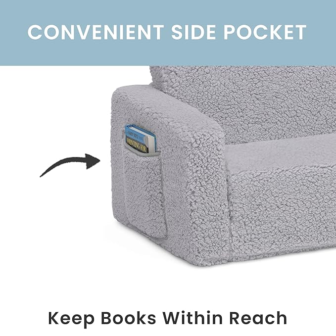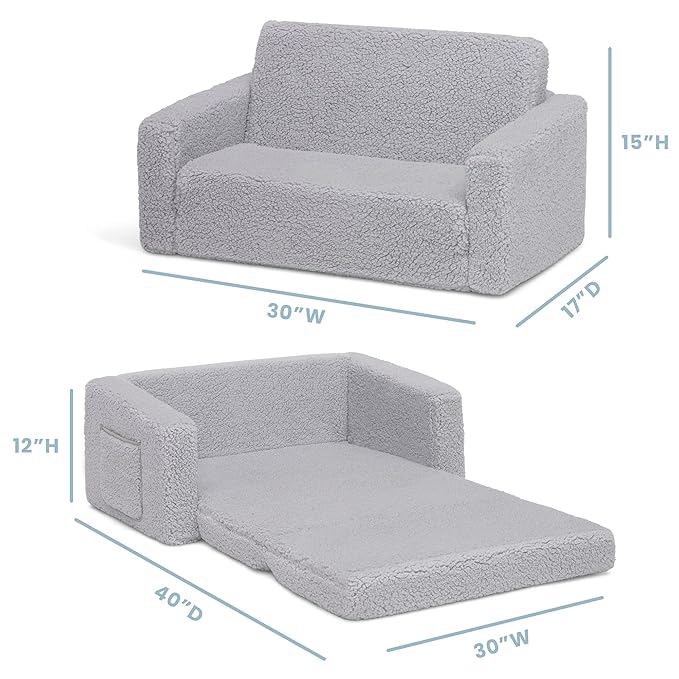 Delta Children Cozee Flip-Out Sherpa 2-in-1 Convertible Sofa to Lounger for Kids, Grey