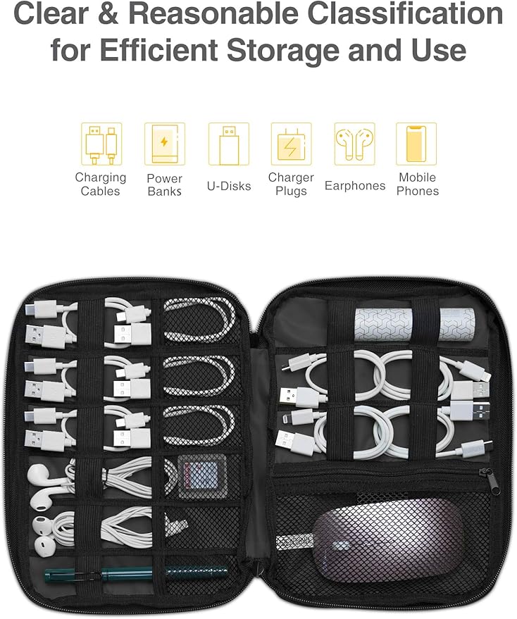 - 【Business Trip and Daily Use】This cable case is perfect for your electronics accessories. Keep everything tidy without mess, a great electronics bag for business trip and daily use