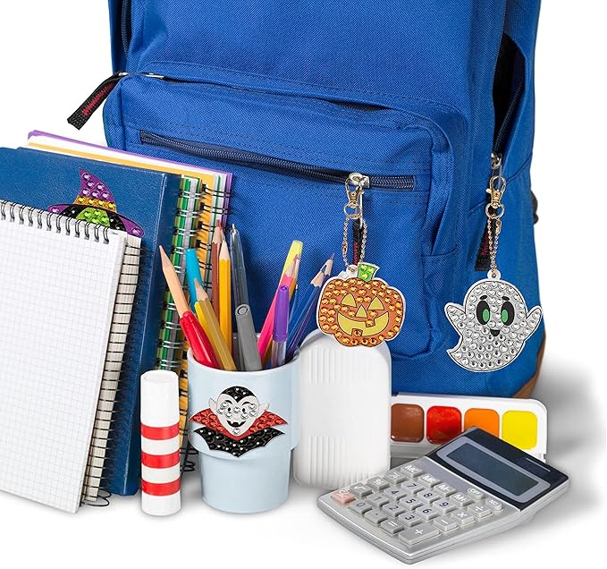 Klever Kits Halloween Gem Art Kit, Kids Halloween Art Crafts Party Supplies, Diamond Painting Kit with Stickers, Suncatchers, and Keychains, Party Favor DIY Activities School Game Goodies Gift