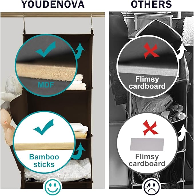 YOUDENOVA Hanging Closet Organizer, 6-Shelf Closet Hanging Storage Shelves, Brown
