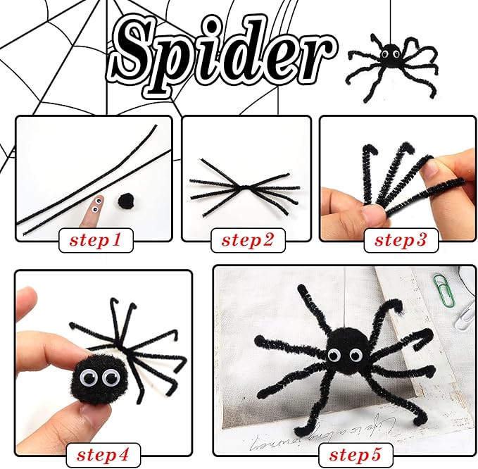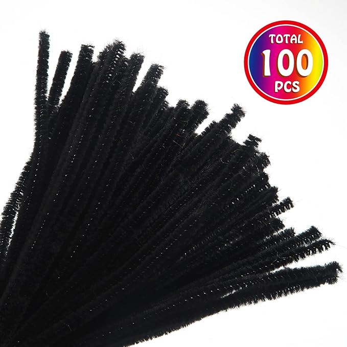 TOAOB 100pcs Pipe Cleaners Bulk Craft Supplies Black Chenille Stems 6mm x 12 Inch Fuzzy Pipe Cleaners for DIY Art Crafts Decorations