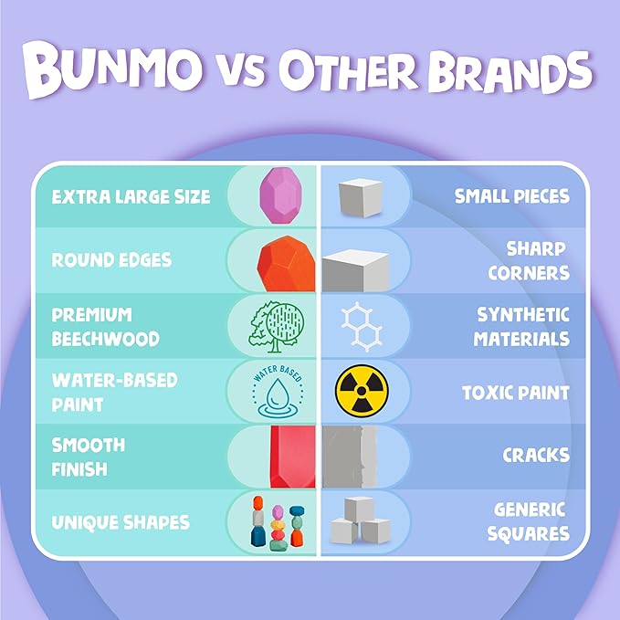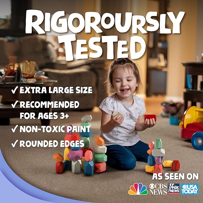 - Extra Durable - Made with premium Beechwood, these high-quality stacking blocks are extra sturdy and made to last. The blocks are perfectly weighted to make stacking easy and fun for all. Our lightweight stacking blocks are the perfect size for little hands making these the ultimate stacking toys.