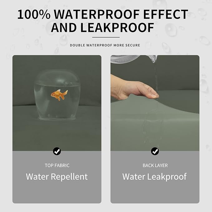 - 100% Waterproof Fabric: Top Fabric is processed with waterproof treatment, and back coated with waterproof layer. Dual waterproof feature can guarantee 100% waterproof effect and leakproof. elastane +polyester, back coated with TPU film. The couch cover is a great choice for homes with children and pets.