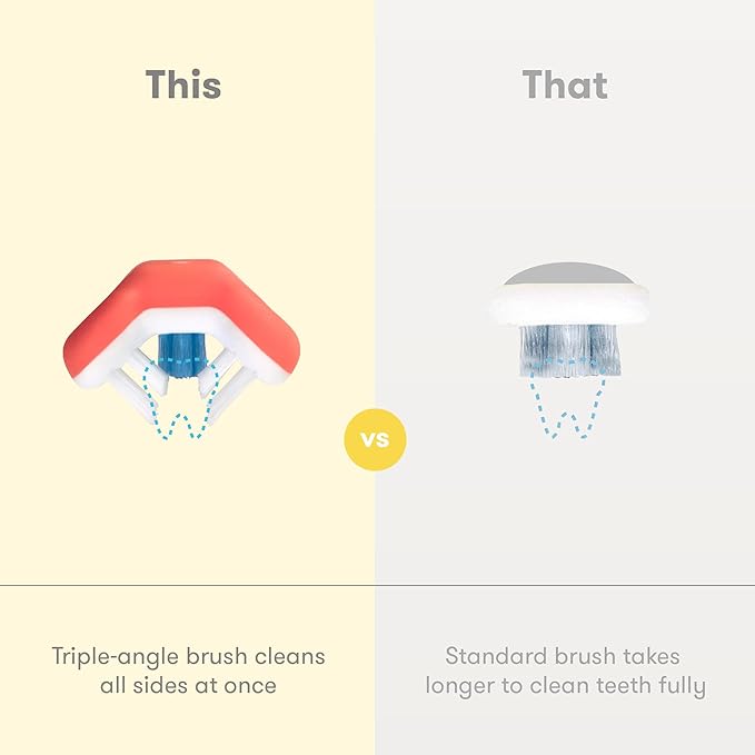 - TRIPLE-ANGLE BRUSH. Dentist-recommended, unique brush head cleans all sides of the tooth all at once.