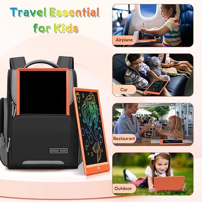 - ๐ [PORTABLE AND LIGHTWEIGHT]: The Preschool toddlers can have all the pleasure, enjoy painting, count the numbers, spell phrases at any time and place (home, car, outside, airplane, school) with no longer making a mess on the ground or walls, especially the time they are at home. 10 inches of writing area, 0.26-inch ultra-thin design, 6 ounces weight, hardly feel the weight of the lcd writing tablet for kids, which is convenient to carry with bag.