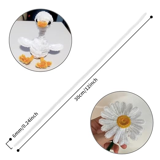 - A nice amount to craft with. 300pcs chenille stems, enough to finish your craft projects, such as making tissue paper flowers, wreaths, animals etc. Size: 6 mm x 12 inch