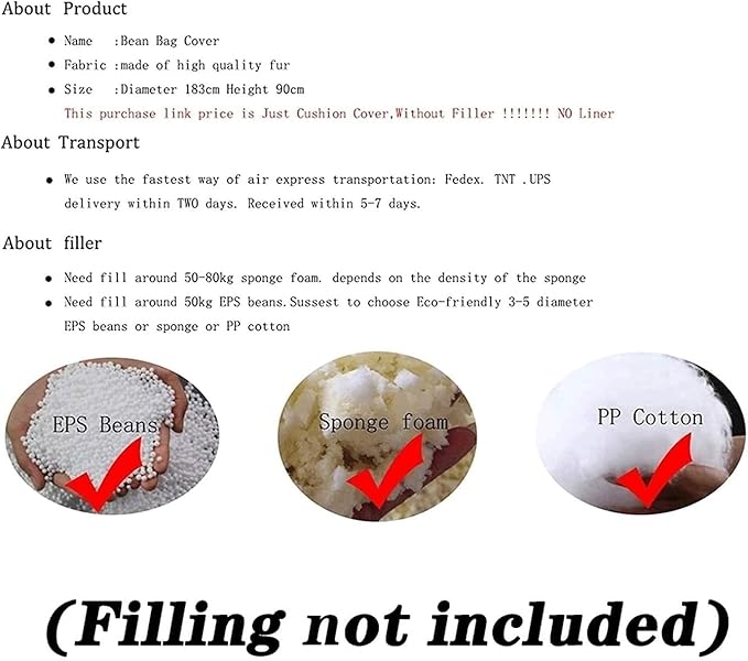 - Size: approx. 6ft=150*70cm/7ft=180*90cm(Measurements are taken from an unfilled bean bag.)(Only Cover, No Filler )