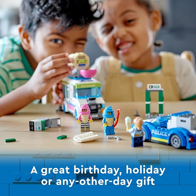 LEGO City Ice Cream Truck Police Chase Van 60314 Toy for Kids, Girls and Boys Age 5 Plus Years Old with Splat Launcher & City Police Car