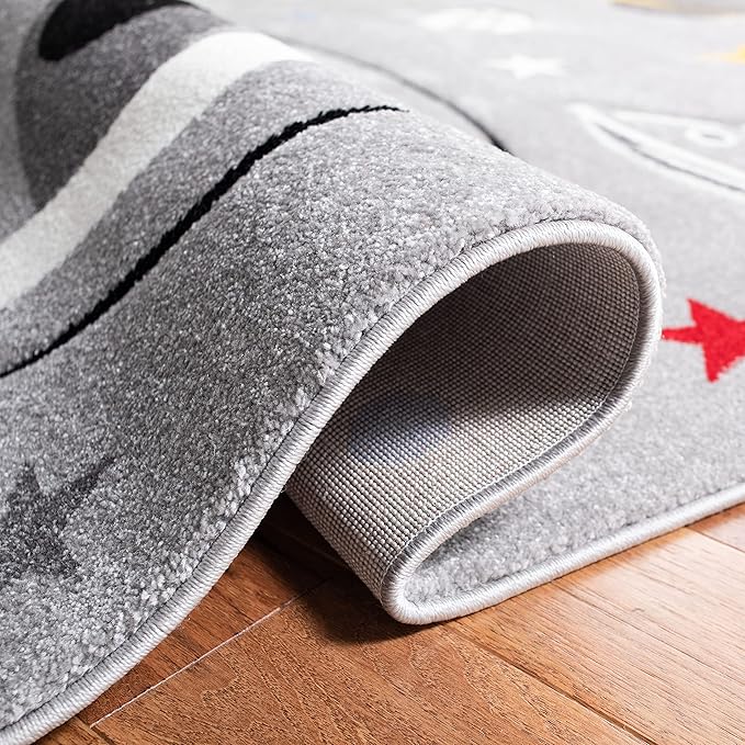 SAFAVIEH Carousel Kids Collection 3' Round Grey/Ivory CRK140F Sloth Astronaut Non-Shedding Playroom Nursery Bedroom Area Rug