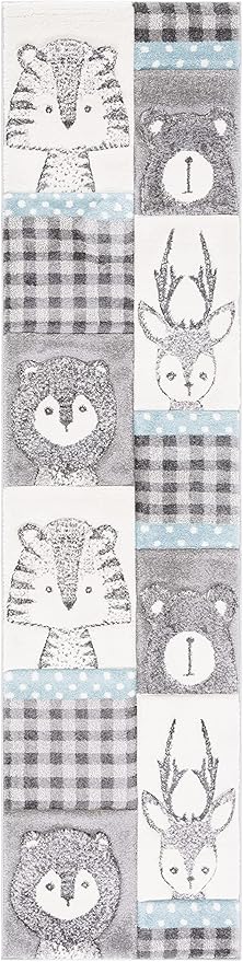 SAFAVIEH Carousel Kids Collection Runner Rug - 2'3" x 6', Grey & Ivory, Animal Design, Non-Shedding & Easy Care, Ideal for High Traffic Areas for Boys & Girls in Playroom, Nursery, Bedroom (CRK188B)