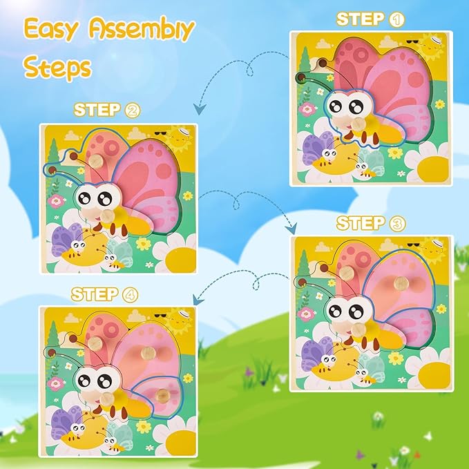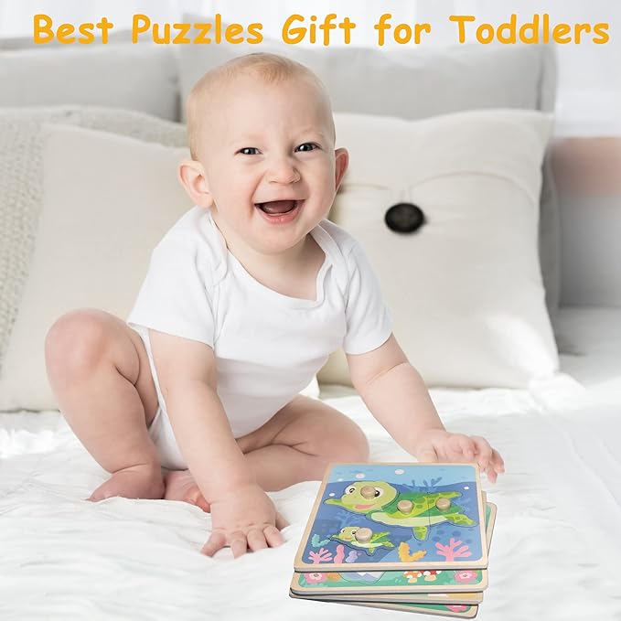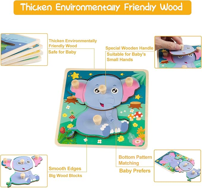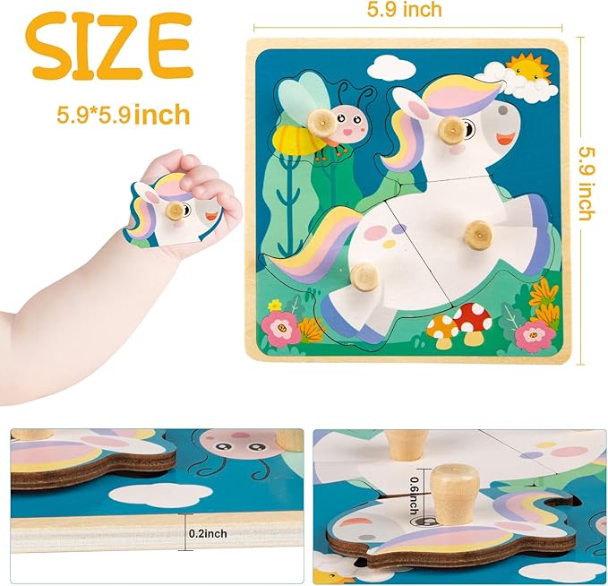 - Durable and with Handle - Our wooden puzzles are made of thickened wood, so it is hard and not easy to deform or crack, very durable, and your baby can enjoy it for a long time. The size of each puzzle is 5.9 x 5.9 x 0.2 inches, and each wooden block has a handle, which is more convenient for the baby's small hands to hold