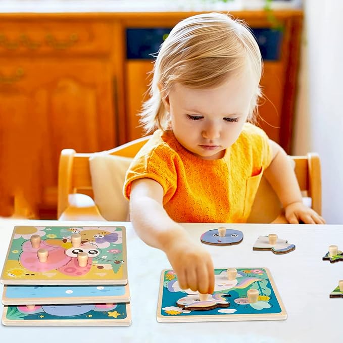 - Learning Through Play - Wooden animal puzzles is an important early education learning toy for toddlers. It can also cultivate children's patience, imagination and hand-eye coordination. Puzzle pieces can be placed into slots accurately, helping babies practice fine motor skills and improve their ability to solve difficult problems