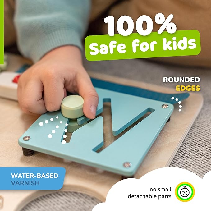 - Ideal educational toy for toddlers - A screen-free, educational toy alternative, this wooden busy board encourages hands-on learning. A great addition to any Montessori toy collection, it offers endless developmental play and makes an ideal gift for busy toddlers and preschoolers.