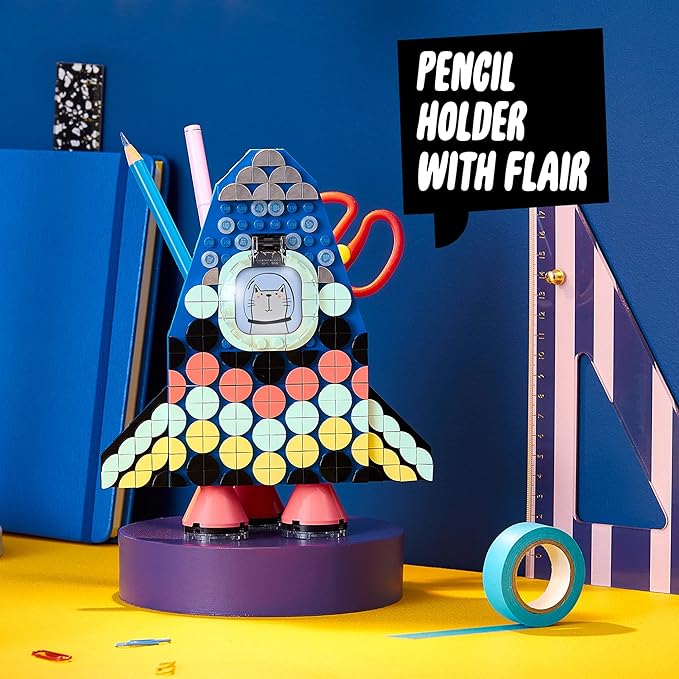 - Any child aged 6 and up, with a passion for space or arts and crafts will love this Pencil Holder (41936) kit. The customizable rocket and colorful tiles make a creative gift for boys and girls