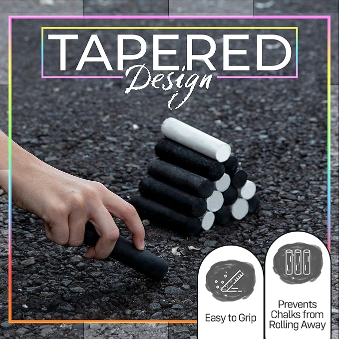 - Easy-Grip Jumbo Chalk: Designed with a tapered shape, these jumbo chalk sticks are easy for little hands to hold and won't roll away. These white & black sidewalk chalk sticks are ideal for crafting cozy winter scenes, they're your go-to for sidewalk chalk for adults and kids, great for marking concrete and more