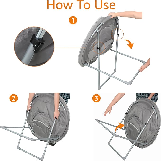 Amazon Basics Comfortable Faux Fur Saucer Shaped Chair with Foldable Metal Frame, Grey, 32.3"D x 27.2"W x 32.3"H