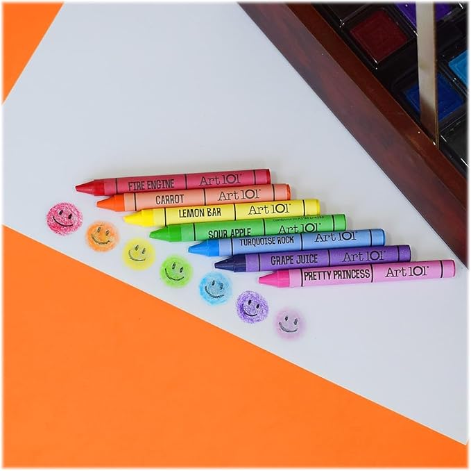 - 170-piece multimedia art set in an expandable wood art case. Set includes: 24 premium core-colored pencils, 72 creamy and pigmented oil pastels, 24 watercolor cakes, three paint palettes, four paint brushes, 24 fine-line markers, and 16 crayons.