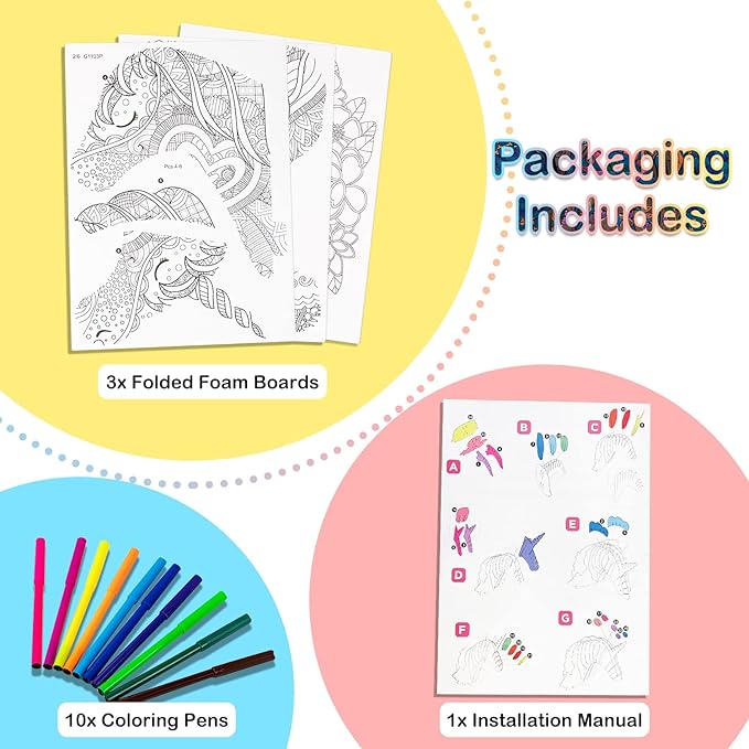 - 🦄🎁Easy Use - Just color and assemble, then you will get your own 3D puzzles, no tools or glue is required; Younger kids may need help from adults