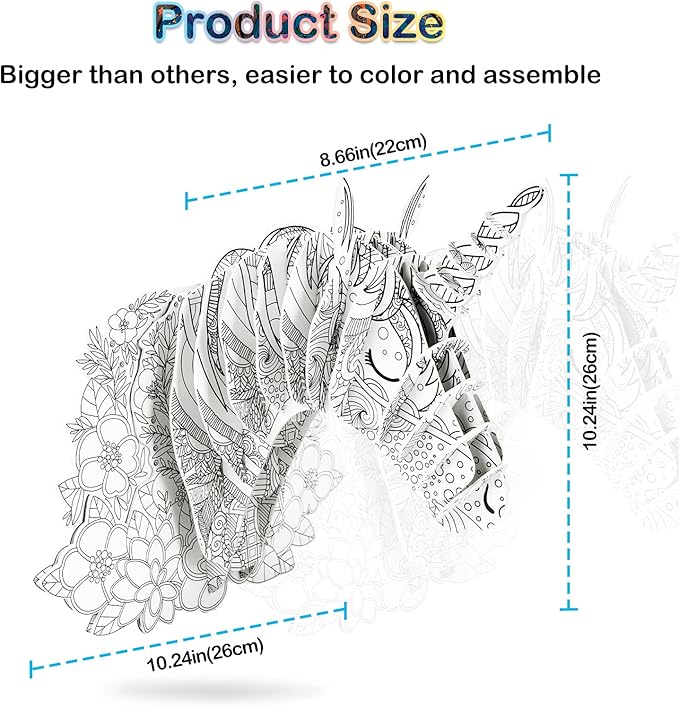 - 🦄🎁Bigger Size - 10.24 x 8.66 x 10.24 inches, bigger than 90% of the coloring puzzles on the market(just 6 x 5 x 2 inches), easier to color and assemble