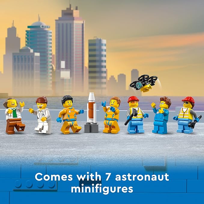 • This space rocket toy for children comes with a service vehicle, planet rover, drone & 6 LEGO astronaut minifigures for creative space play