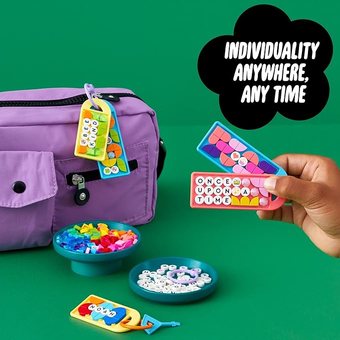 • Design, wear, tag, share – Treat an arts-and-crafts fan with this LEGO DOTS Bag Tags Mega Pack – Messaging (41949) craft kit. Start the creative fun by opening the tray