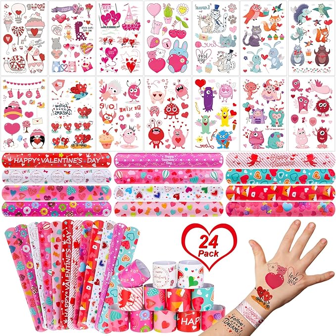 - 【valentines gifts】valentines party favor bracelets tattoos set are perfect for kids, boys, girls, toddlers, pretend play valentines toys, valentines gifts, valentines party favors, valentines day cards gifts, school event prizes, class exchanging gifts, kids school classroom exchange activities,birthday presents, game carnival prizes, students gift.party favors bags stocking stuffers or the crafts table at your party, for home, in the classroom, or in the art class.