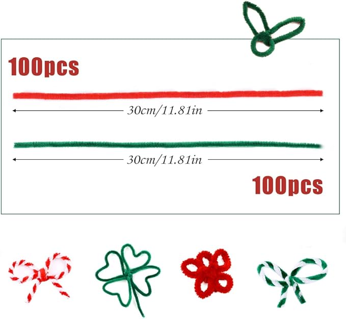 - YOU WILL RECEIVE: Christmas Pipe cleaners 200 pcs(white/green, 100 pcs per color), which easy to bend and mold to create designs, soft, and ideal for all craft projects. Create your unique Christmas holiday decoration wreath or animal craft project, and your cat's favorite funny cat tool by this pipe cleaners for crafts