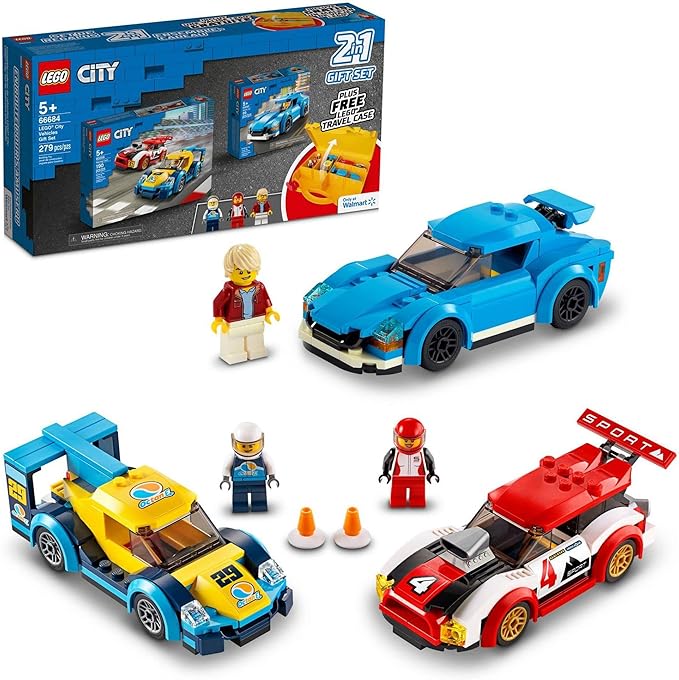 - The special gift set includes 60256 LEGO Racing Cars building set (190 pcs), 60285 LEGO Sports Car building set (89 pcs) - and a bonus travel case