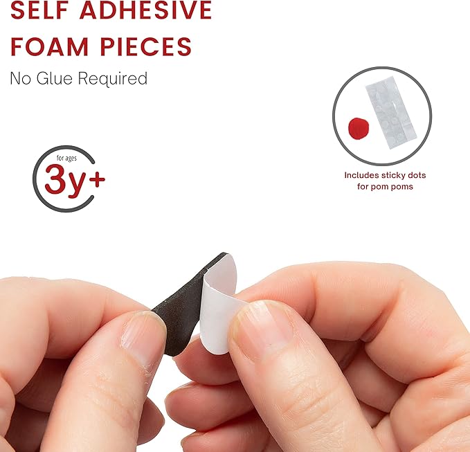 - NO GLUE REQUIRED - Self adhesive peel & stick foam stickers, Includes sticky dots for pom poms. Simple & easy for toddlers kids to make their own Christmas tree ornament craft. Great party activity, Christas party favors & goodie bag fillers for kids.