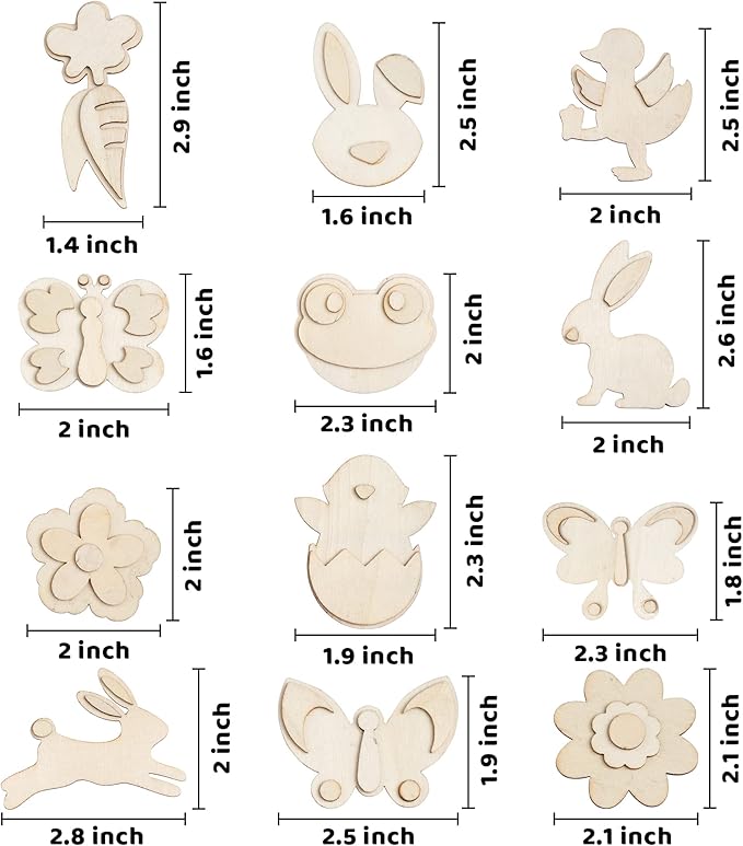 - Unique Design & Easy To Use. The wooden craft painting kit contains 12 lovely designs,such as ducks, chickens, butterflies, rabbits and many other elements. Adorable easter wooden magnet painting crafts allow you to create your own wooden art in any color you want. Your friends and family can also get involved and have fun together to celebrate Easter!