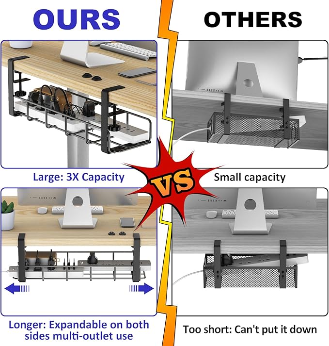 - TIDY & CLEAN DESK SPACE : REFLYING Wire management under desk makes your working space more tidy, no more messy wires and power strip, this desk cable tray is quiet different from old under desk cable organizer, more helpful, useful and more long-lasting.