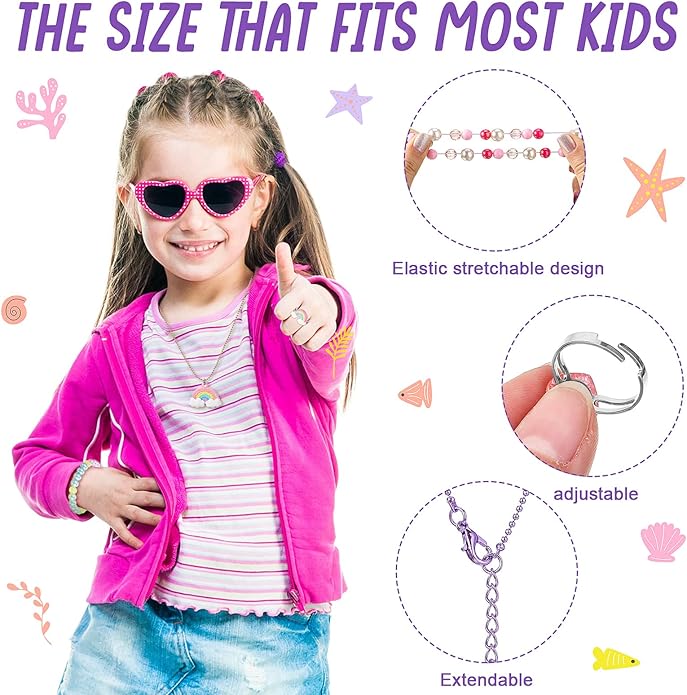 - Safe and quality: girls necklaces bracelets and rings set are made of epoxy resin, skin friendly, easy to maintain, sturdy and not easy to wear; All alloy products are safe for girls, so you can rest assured to have them